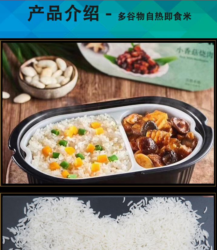 開(kāi)水沖泡型:如千石谷等,便于攜帶、儲(chǔ)藏,米粒香糯,五谷米飯種類多;細(xì)分可分為速煮米和纖維餐。脫水干燥型:經(jīng)過(guò)脫水干燥的米飯顆粒,在食用時(shí)覆水(加開(kāi)水浸泡)數(shù)分鐘即可食用,分自熱型如廚師、得益;