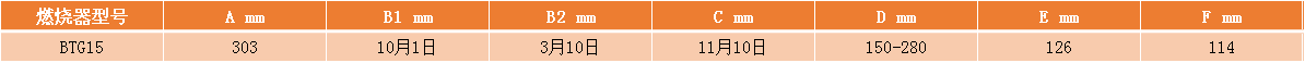BTG15百得燃?xì)馊紵鲾?shù)據(jù)參數(shù)表: