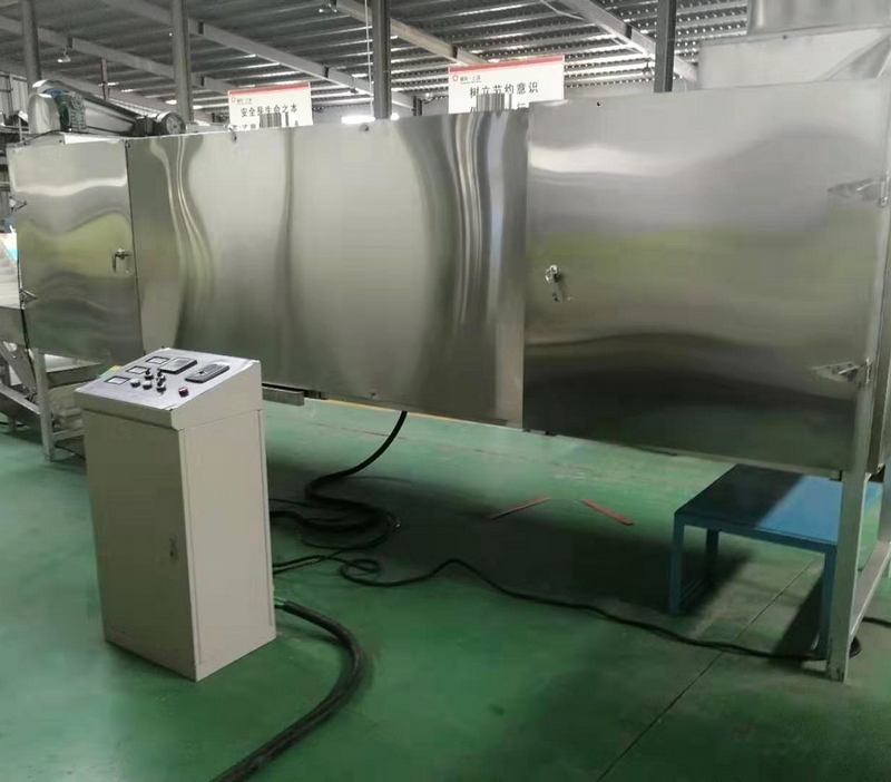 拌粉機(jī)→螺旋上料機(jī)→(調(diào)制)雙螺桿膨化機(jī)→風(fēng)送機(jī)→多層烘干機(jī)-滾筒調(diào)味機(jī)